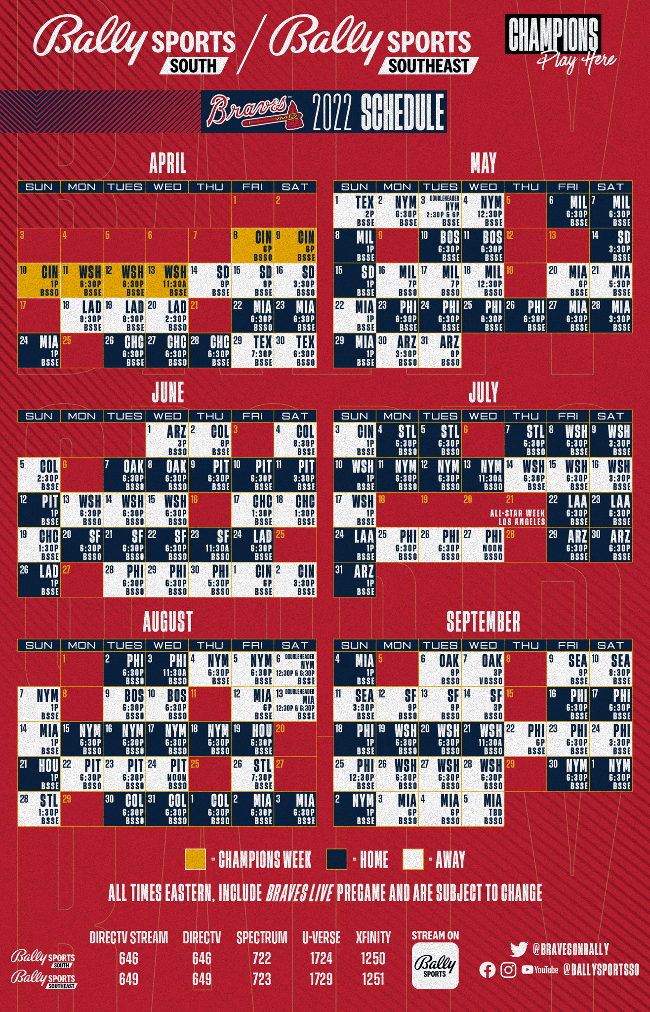 Bally Sports South On Twitter Bally Sports South And Bally Sports Southeast Unveil 154 Game Braves Telecast Schedule Story Https T Co Pjtidtxug1 Schedule Https T Co 9iks4n0ozx Https T Co Yshttwxzrn Twitter